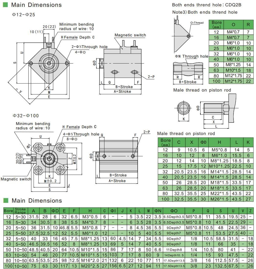1. Компактные пневмоцилиндры серии C(D)Q2, двойного действия выпускается с диаметрами отверстий от 125 до 200 мм.