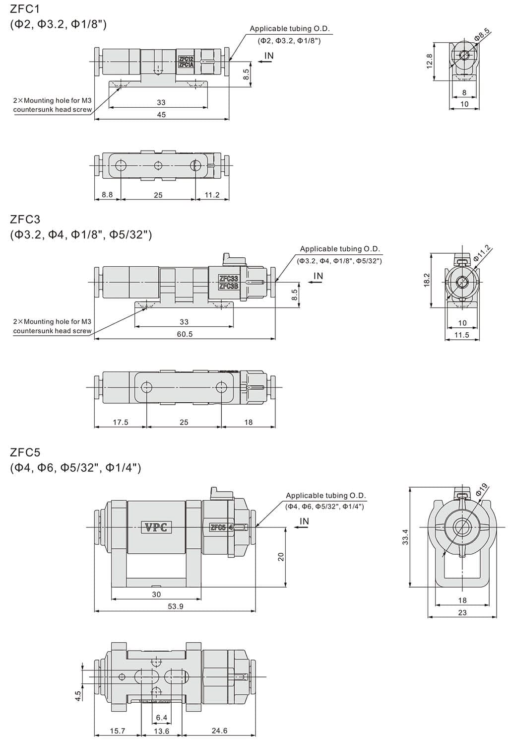 Размер порта(Применимый внешний диаметр трубки O.D.) | Метрический размер | Φ2 | Φ3.2 | Φ3.2 | Φ4 | Φ4 | Φ6 | Φ6 | Φ8 | Φ10 | Φ12 |