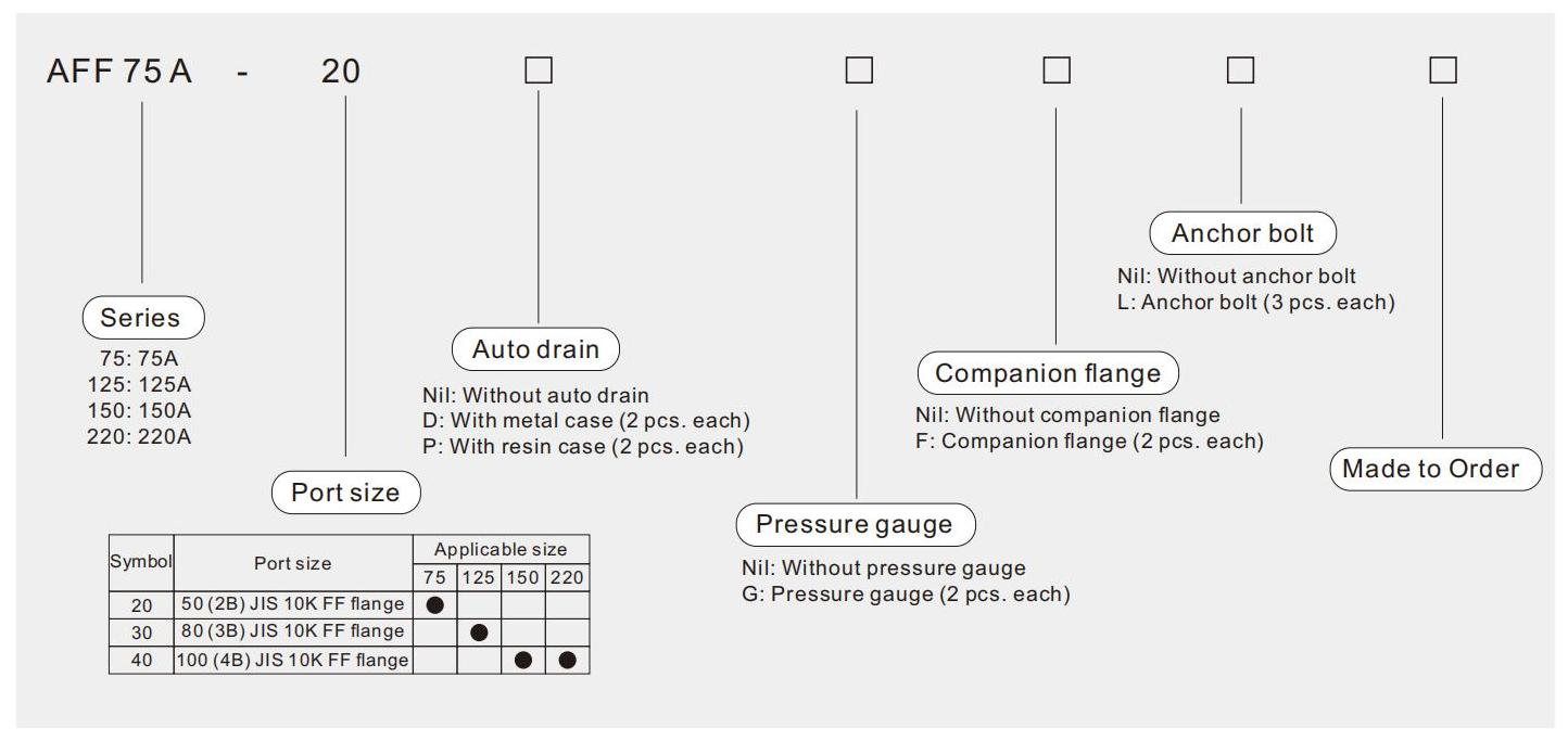 | AFF22C-10-□ | AFF22C-10D-□ | 22 | 3700 | 1″ | 2,1 | AM-BM105 | — | — | AFF-EL22B |